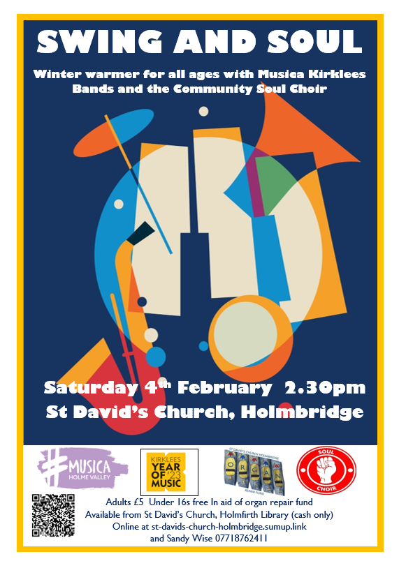 Tickets available online from St David's Sum Up Store, St David’s Church, Holmfirth Library (cash only) or by calling Sandy Wise on 07718762411.